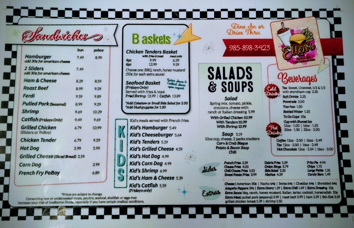 Choose a soda: Coke, Diet Coke, Sprite, Root Beer, Dr. Pepper.